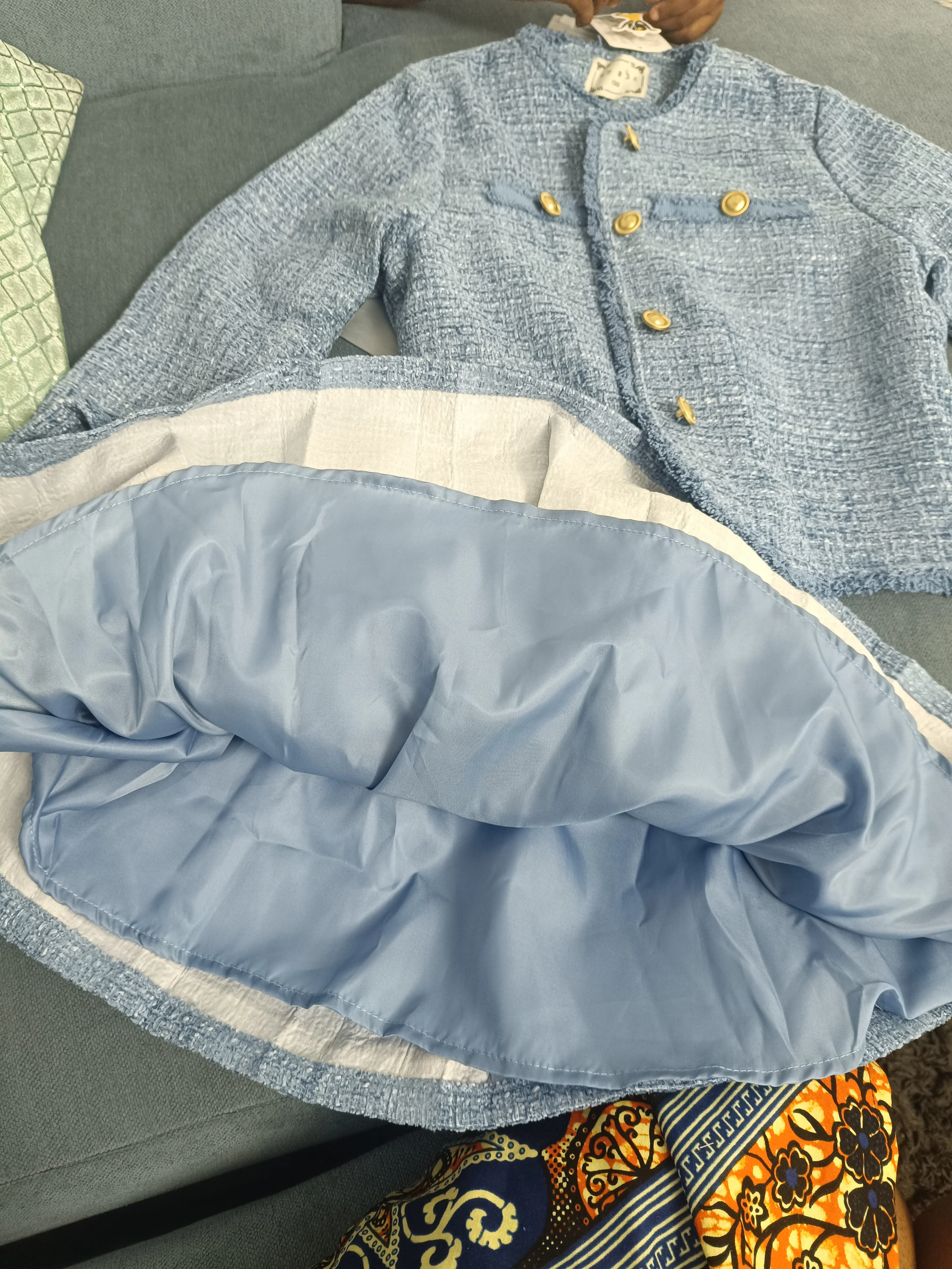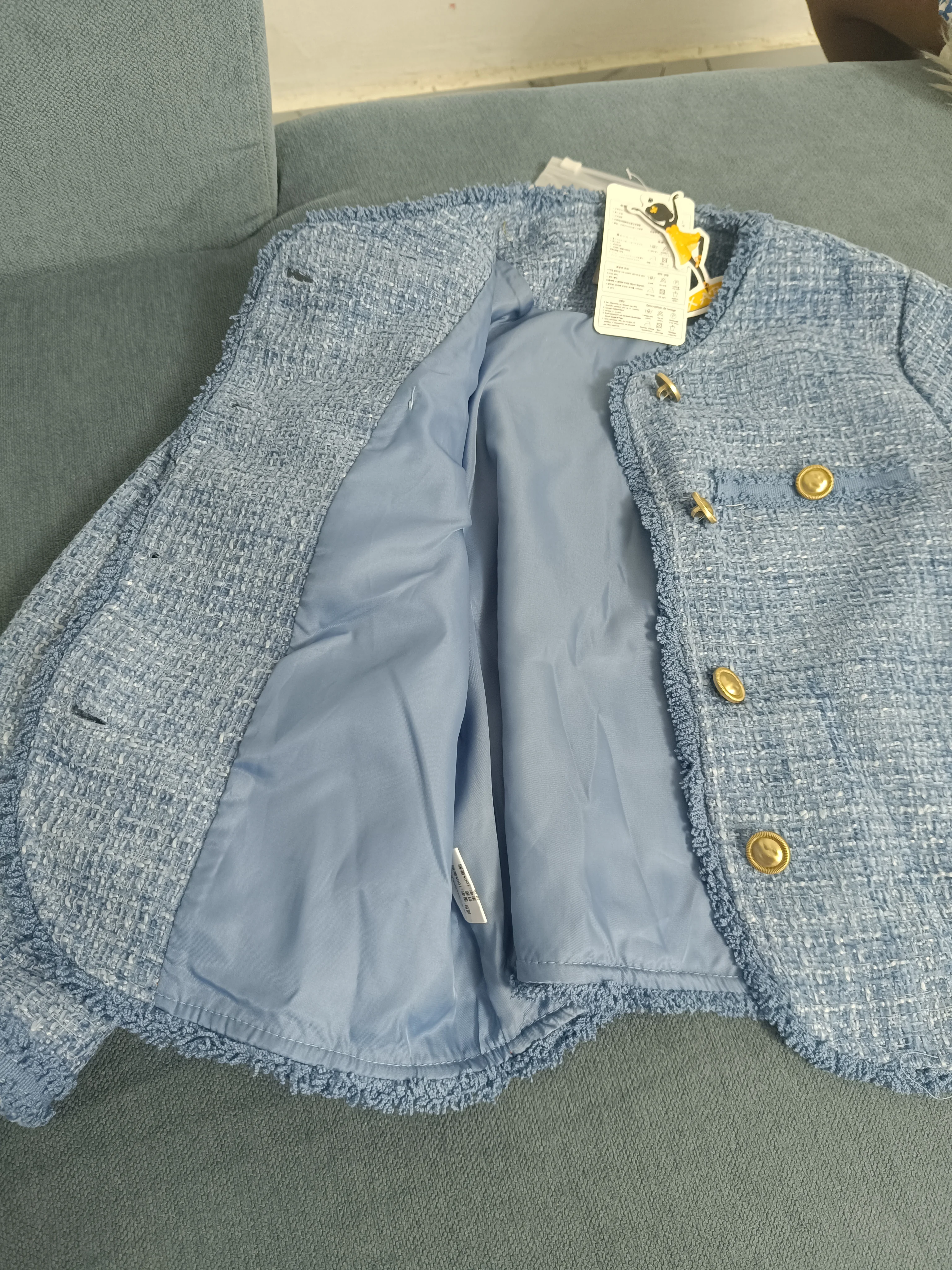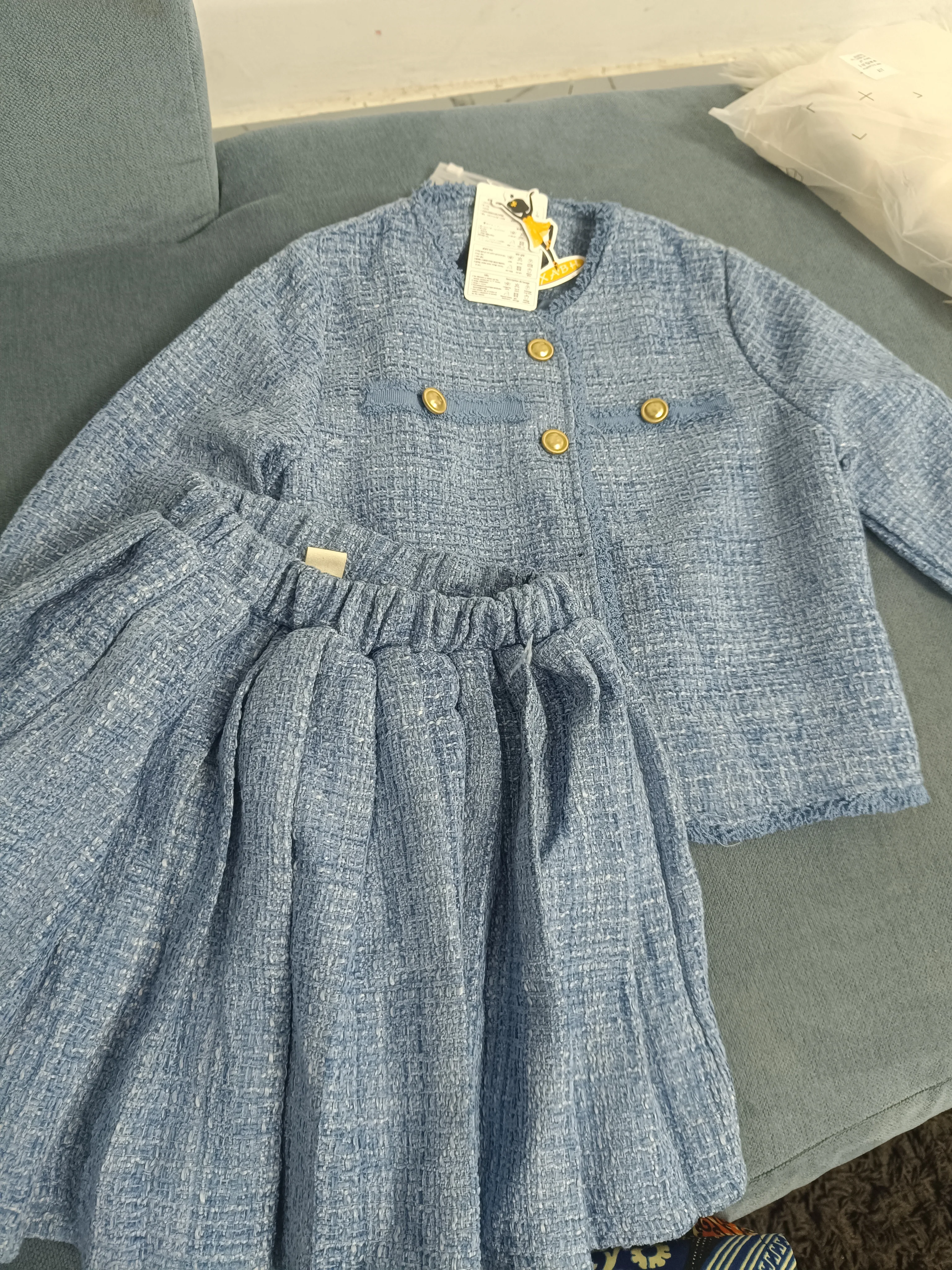 Bộ váy cho bé gái mới áo dài tay + váy ngắn xếp li Denim
